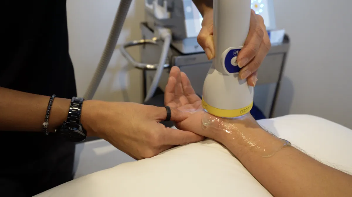 Trauma to the tendons can generate calcified fibroblasts in the injured area. Calcified fibroblasts cause chronic pain which decreases mobility. Using acoustic wave pulses, calcification is cleared from the damaged area after being broken into small particles that are easily absorbed by the body. This reduces pain and restores function.